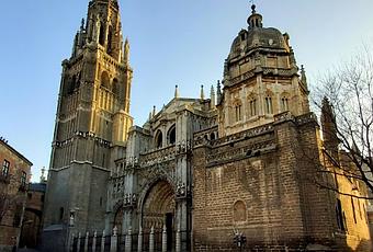 La plazuela del Ayuntamiento era el único desgarrón que permitía al cristiano monumento respirar su grandeza. En este pequeño espacio de cielo libre mostraba a la luz del alma los tres arcos ojivales de su fachada principal y la torre de las campanas, de enorme robustez y salientes aristas, rematada por la montera del alcuzón, especie de tiara negra con tres coronas, que se perdía en el crepúsculo invernal nebuloso y plomizo.