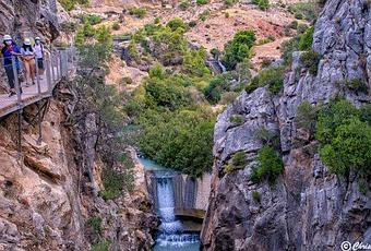 El Caminito del Rey se encuentra en el paraje natural del Desfiladero de los Gaitanes, perteneciente al municipio de Álora y muy cerca de Ardales y Antequera y en realidad es un cañón excavado en el río Guadalohorce, con espectaculares vistas desde las pasarelas. ¿Por qué se llama el Caminito del Rey? Pues porque el canal de agua construido desde Guadalhorce hasta El Chorro, aprovechando el desnivel en una central hidroeléctrica, fue inaugurado por Alfonso XIII en 1921. El monarca recorrió la pasarela sobre el río a pie (alrededor de 3 kilómetros) y el lugar quedó así bautizado en su honor. A su inicio, pocos se atrevían a cruzar un desfiladero de vértigo. Hoy -candidato a Patrimonio de la UNESCO- está totalmente restaurado y es accesible al público y se puede realizar con niños de a partir de 8 años, en visita libre o guiadas.