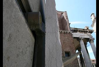Scarpa en 1966 recibió el encargo de arreglar el pequeño espacio junto a la iglesia de San Nicolás de Tolentino para convertirse en la entrada del Colegio de Arquitectura de Venecia. Esta primera fase del proyecto se sigue con una segunda en 1972, cuando fue nombrado Director Scarpa IUAV, y una tercera llevado a cabo entre 1976 y 1978.