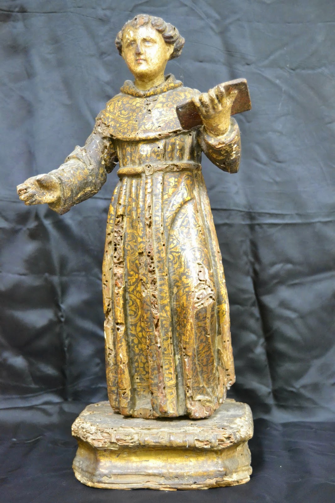 FICHA TÉCNICA: Objeto: Talla policromada y dorada. Materiales: Madera, oro, temple, óleo, resina.