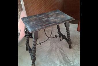 Me encontré esta mesita auxiliar de finales del siglo XIX en la calle, uno de esos días que me encantan, cuando la gente saca los trastos que ya no quiere a la puerta de sus casa para que el camión de la recogida de voluminosos se los lleve. Ese día, en mi barrio los viernes, hay que salir a la caza del tesoro.