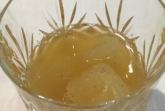 Burbujas de tónica con sorbete de mango y bayas de enebro