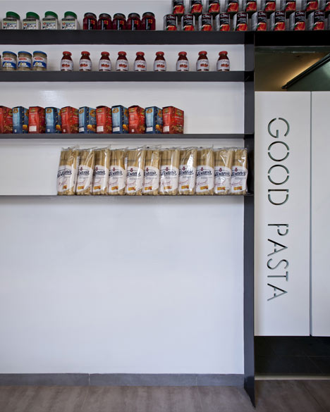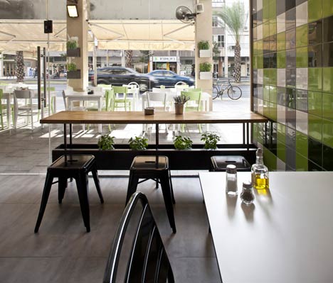 Este local tiene como ventaja la gran altura de su techo ya que siendo un local de pocos metros cuadrados la altura le da esa sensación de amplitud visual. La decoración del lugar es muy sencilla, se combinan azulejos vitrificados tanto en color como en negro, este tipo de azulejo es muy economico y se adapta a los proyectos como un guante. Espero que el lugar os inspire tanto como a mi.