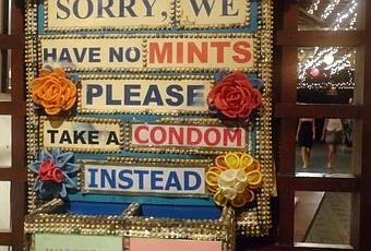 Su razón social de ser se hace obvia cuando te fijas un poco en algunos elementos decorativos del restaurante. Entre otros elementos hay lámparas decoradas a base de condones, flores hechas con condones, e incluso varios maniquís con vestidos hechos a base de condones. Ni que decir tiene que la gente se vuelve loca haciendo fotos.