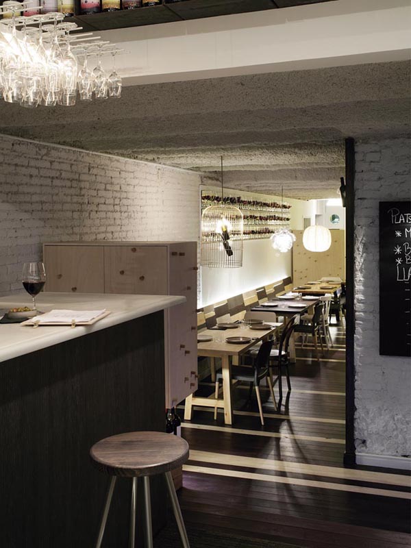 A la hora de proyectar y más en una gran ciudad no nos vamos a encontrar siempre locales con formas cubicas, si no más bien "churros" en los que aprovechar hasta el ultimo rincón. Este local es de tipo "churro" transformado en un proyecto con rincones con ambientes diferentes. Conseguir este efecto no es nada fácil pero el estudio Lagranja ha conseguido, con Cata 181, que los cambios en tonalidades y texturas en cada zona del local los haga parecer micro-ambientes únicos y diferenciados del resto.