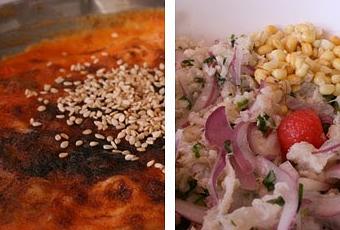 Para comenzar, compartimos un ceviche peruano, una deliciosa cazuela de mariscos con arroz en la base y queso en la cubierta, pero lo qué está de agasajo fue el chicarrón de pescado, que lo sirven con guacamole. Luego, comimos un molcajete de camarones delicioso y filete de pescado. Todo fabuloso, hasta el postre, que fueron crepas de cajeta.