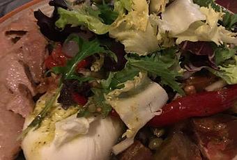 Después de un vermut, fuimos a cenar al restaurante For Amur. El nombre igual os parece curioso...pues bien, es un juego de palabras, ya que el restaurante está en la calle Fora Mur, justo al acabar las murallas que rodean el castillo. Solo por eso ya parece especial...y lo es. Decoración ecléctica, una mezcla indescriptible de estilos, música en directo, unos dueños encantadores y una oferta gastronómica bastante buena son la combinación perfecta para nuestra noche diferente de jueves del mes de abril. Así que, sin más rollo, paso a enseñaros cuáles fueron nuestras elecciones...todo para compartir (me encanta hacer esto porque así pruebo más platos jajaja):