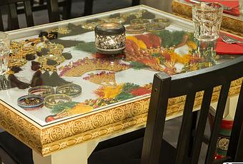 Esta es una foto de las mesas de diseño del mejor restaurante indio en Barcelona, ¡Thali restaurant!