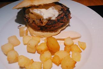 Hamburguesa de ternera con queso brie y cebolla caramelizada