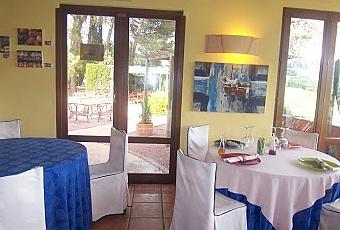 Ya en el interior se observa un estilo rústico pero espacioso y exento de excesivos aperos y chabacanerías que tanto abundan últimamente por las zonas rurales. Cabe destacar los diferentes ambientes destinados por una parte a quien disfruta de un rincón recogido e íntimo, y por otra a los que, como en mi caso, disfrutan sentados frente a un inmenso ventanal que hace que la montaña se siente a comer a tu mesa y que la luz inunde la estancia, permitiendo a su vez contemplar la surtida huerta en la que pocas horas antes crecía alegremente la mayor parte de los ingredientes que ahora están en mi plato.La mantelería y el menaje, actuales y de acorde con el local, destacando sobre el conjunto el diseño de los platos, de gran tamaño y distintos colores, que aportan una nota desenfadada al comedor.