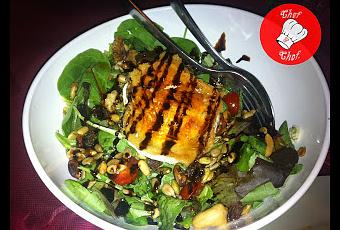 Los postres estuvieron a la altura, o incluso mejoraron la cena. Pedimos un coulant de chocolate que venía acompañado de helado de vainilla y decorado con el omnipresente sirope de caramelo. Me atrevería a apostar a que no ha sido cocinado en varios kilómetros a la redonda. A pesar de todo, logra calmar mi ansia de azucar. El otro postre es más difícil de clasificar. Casi mejor decir los ingredientes y que cada cual lo defina a su gusto. Era una mouse de queso servida con trozos de turrón semifrío, de piña y bañado por sirope de caramelo. Una delicia para los más golosos.Terminamos con unos cafés y unos chupitos mientras esperábamos la cuenta. No fue nada caro, salimos por unos veinte euros por cabeza.