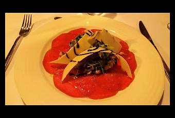 Carpaccio de buey con virutas de parmesano y aceite de lima