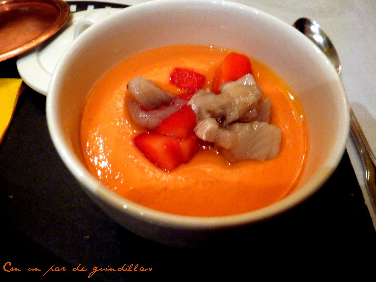 El siguiente plato fue una refrescante ensalada con unos tomates muy carnosos combinados, de forma magistral, con unos nísperos asados.