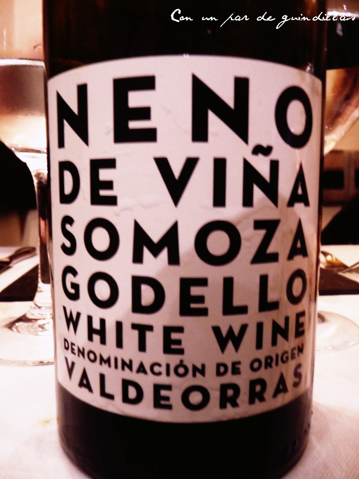 Como he dicho no nos habían traído la carta cuando nos cantaron los platos “fuera de” y fue el propio Abraham el que nos trajo los entrantes sobre una claqueta ¡sin retirar los platos que teníamos en la mesa!, ósea, la puso encima, a estas alturas no nos habían traído la bebida, aunque apareció casi al instante un camarero con un Godello, una uva por la que siento una especial debilidad y nos preguntó si queríamos beber algo antes de la comida ¿?, bueno… me pedí una cerveza.