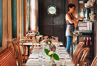 Os dejo hoy un restaurante neoyorquino que me ha atrapado, porque creo que tiene ése "algo"que me haría sentir bien tanto mirando a mi plato como mirando a mi alrededor.Five Leaves