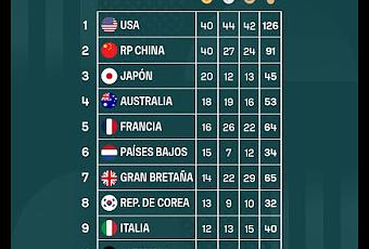 Tras EEUU y China, Japón, Australia, Francia, Países Bajos, Gran Bretaña, Corea del Sur, Italia, Alemania, Nueva Zelanda, Canadá, Uzbekistán, Hungría y España en la posición quince siguieron a estas dos superpotencias en el medallero olímpico. Aquí lo tienen más detallado: