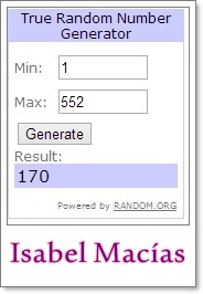 Esta vez he dejado pasar un par de "trampas" que algunos habéis intentado meter como quien no quiere la cosa. Pero para la próxima dejaré bien claras las bases de una vez. Hay personas que no he podido incluir en la lista de participantes por ponerme URL de seguidor que no llevaba a ningún lado, otras por no aparecer como seguidor del blog o seguirme en privado.