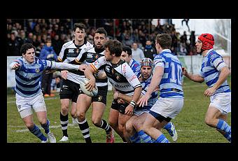 blanquiazul fue mucho más poderosa, tanto en el terreno de juego como en las gradas, alzándose con firmeza ante la adversidad.Los alicantinos comenzaron a recuperar la posesión del balón, encontrándose más cómodos con el control del juego. La contundencia de los hombres de Quirelli en las incursiones fue in crescendo. Tras numerosas aproximaciones a la línea de ensayo de Les Abelles, llegaba el merecido try de Bruno Villalba. Y en pocos minutos, Matías Jara iniciaba una potente escapada, trazando sus características medias lunas para evitar los placajes y, de este modo, llegaba el segundo ensayo de su equipo.