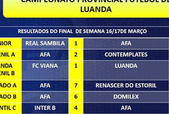 Estos son los resultados de nuestra Escuela de Fútbol Base AFA Angola del pasado fin de semana.