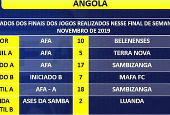 Estos son los resultados del fin de semana 2-3 Noviembre de la Escuela de Fútbol AFA Angola.