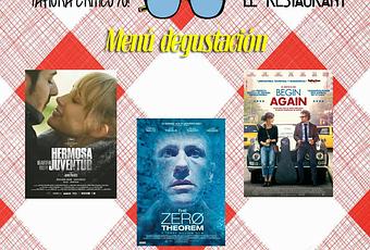 Nuestra primera propuesta es un MENÚ DEGUSTACIÓN, una selección de pequeñas películas (algunas más que otras) que pueden ser consumidas a modo de tapeo, en el que empezamos con Jaime Rosales y su 'Hermosa Juventud' para pasar después a un autor como Terry Gilliam que con 'Zero Theorem' vuelve a deslumbrarnos con su visión del futuro, y acabamos con 'Begin Again', que a modo de postre refrescante compensa en buena medida la amargura de las dos primeras propuestas.