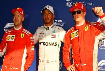 El ganador de la carrera del año pasado, Vettel, tuvo que conformarse con el tercer puesto en la parrilla esta vez, negó por poco el inicio de primera fila de su compañero de equipo de Ferrari, Raikkonen, quien encontró una buena forma al comienzo de su temporada número 18 en la máxima categoría.