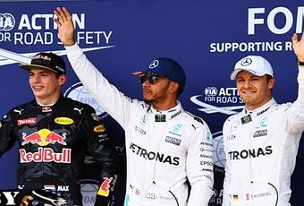 Lewis Hamilton superó a su compañero de Mercedes Nico Rosberg y se aseguró la pole position para el Gran Premio de Gran Bretaña, a pesar de haber tenido un tiempo de vuelta eliminado, terminando a más de un segundo de los pilotos de Red Bull Max Verstappen y Daniel Ricciardo.Hamilton que ya había marcado el ritmo en todas las sesiones de libres del fin de semana se puso al frente en la primera tanda de la decisiva Q3 pero se le anuló el tiempo por exceder de los límites en Copse.