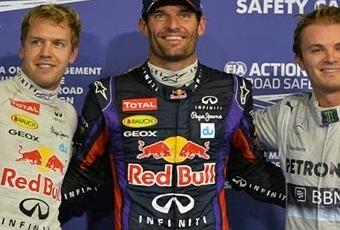 Fantastica Pole Position lograda por Mark Webber en la clasificacion numero 17 del año; Vettel fue segundo y Rosberg tercero; el piloto de Australia ha logrado su pole numero 13 en todo su historial y la primera de esta campaña 2013, el de Red Bull marcó un 1:39.957 para sellar el primer lugar por algo más de una décima de segundo.Al comenzar la Q3 fue inicialmente Vettel - uno de los únicos dos pilotos junto con Rosberg que comenzaban con dos juegos frescos de neumáticos blandos disponibles - quien marcó el ritmo. Un tiempo de referencia de 1:40.091 parecía que iba a entregarle al recién coronado cuádruple Campeón del Mundo la 44ª pole de su carrera, pero todo cambio en la parte delantera en las últimas vueltas.