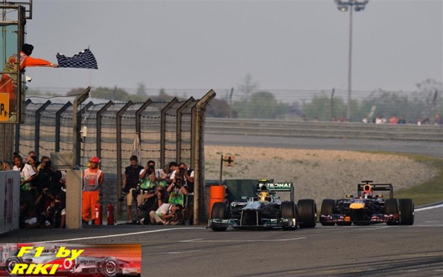 Tras 56 vueltas al circuito de Shanghai, Fernando Alonso cruza la linea de meta en la P1 seguido de un implacable y consistente Kimi Raikkonen, Lewis Hamilton completa el podio imponiendose por tercera vez seguida sobre Rosberg.Con 25 grados centigrados en el ambiente y 33 grados en la pista, la largada se dio de manera limpia, sin abandonos, el hecho de mas relevancia fue la mala traccion de Kimi Raikkonen, lo cual fue suficiente para ser superado por ambos pilotos de Ferrari en la curva 1. Desde ese momento, el ritmo del F138 empezó a aumentar y la estabilidad de los tiempos demostraron que el monoplaza de Maranello funciona muy bien en condiciones de carrera. En lo que respecta a Massa, el brasileño completó un buen Gran Premio, terminando en sexta posición, pero por culpa del tráfico no pudo aspirar a las opciones de podio que parecían alcanzables en la salida.