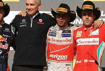 A partir de ese momento el duelo continuo pero Vettel no pudo llevar a su RB8 a una posicion peligrosa para Hamilton, la distancia a partir de ese momento se mantuvo entre 0.6 y 1.2 segundos; Lewis administro perfectamente las gomas y supo llevar a cabo una carrera exitosa y reñida hasta el final.