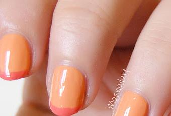 ¿Cómo se hace? Pintamos las uñas del color que queramos (que no esté tan espeso como el naranja que yo he usado) y luego con el otro color descargamos mucho el pincel hasta que quede casi limpio, y pintamos la francesa con cuidado.