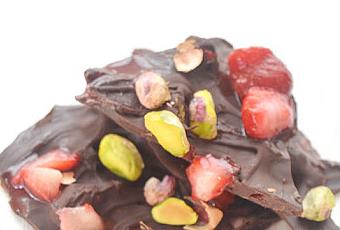Ingredientes- 1 tableta de chocolate negro.- Un puñado de fresas congeladas.- Un puñado de pistachos pelados.
