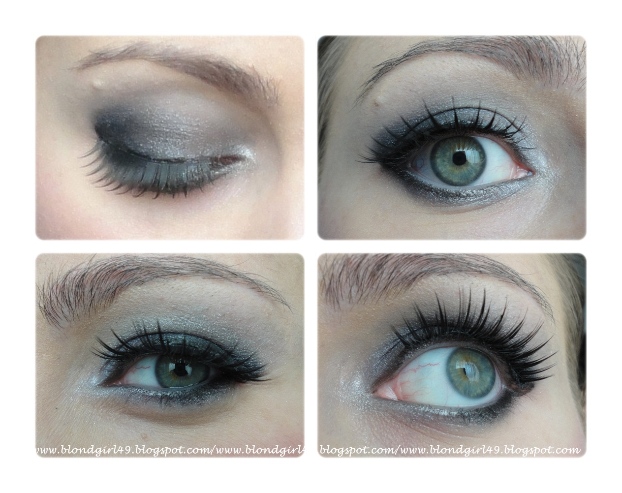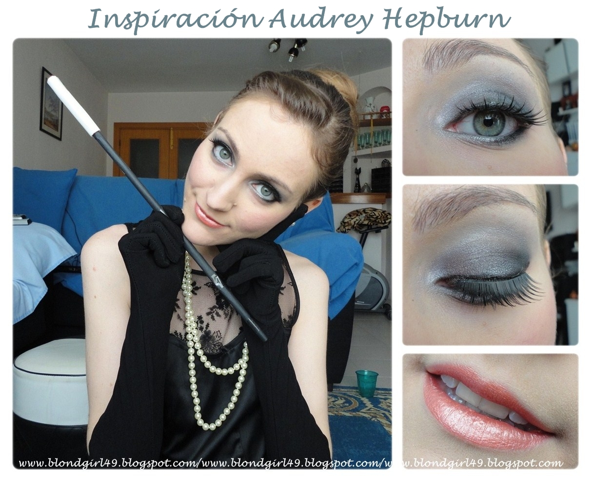 Este es el proceso que seguí para pintarme los ojos, es una variedad de ahumado en tonos gris y negro :) y me puse pestañas postizas para que fueran todavía más llamativos los ojos, incluso diría que Audrey usaba postizas por varias fotos suyas que he estado mirando^^Fotos ojitos: