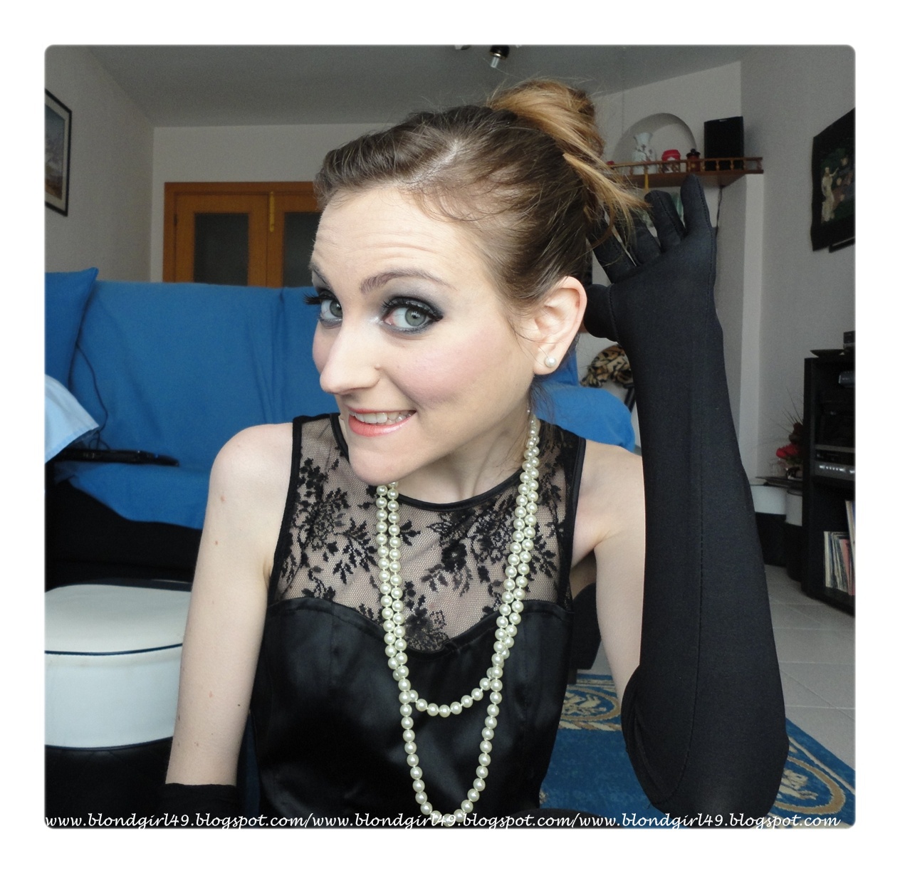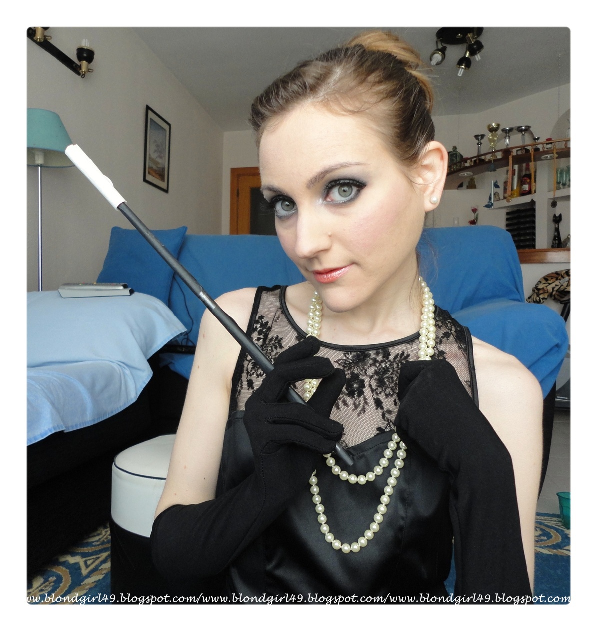 Como se puede apreciar también me intenté hacer algún recogido similar a los que ella usaba, me puse un vestidito negro y me hice una "pipa" de estas tan largas que antes se usaban jajaja (me quedó algo cutrecillo el invento :$), pero os aseguro que me divertí mucho con todo el proceso jajaja