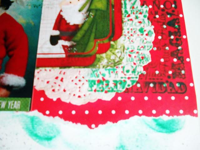 Por debajo de la foto añadimos un tag de Bo bunny de la colección Elf magic y le troquelamos las esquinas, para terminar le dimos un poco de purpurina verde.