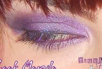 Los productos que utilicé son prácticamente iguales a los que usé para hacer el look de Gengar excentuando una sombra.Primero, la sombra en crema Fierce Violet (Kiko) por todo el párpado móvil, justo encima de ella la sombra Dream On (In Your Dreams - Too Faced) y difuminando el corte de la cuenca la sombra Rebel (Bad Girl - Sleek).Para dar un toque más mágico, usé un poco de prebase Colour Arts justo en el centro del párpado móvil y apliqué el pigmento Shinigami (Shiro Cosmetics) a toquecitos, como tiene unos preciosos destellos harían resaltar mucho más el look.