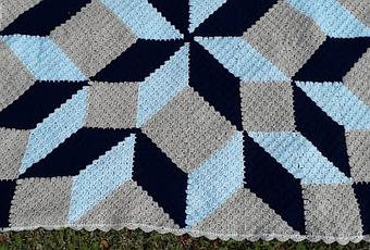 Está hecha en la técnica C2C, una técnica facilísima de tejer y muy resultona. Me encanta.