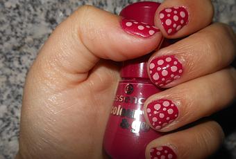 No quería hacer la típica manicura de puntos, todos del mismo tamaño. Así que me he decidido por una manicura de puntos de dos tamaños. Quería una manicura alegre, así que he utilizado un morado y un rosita claro. Espero que os guste el resultado.