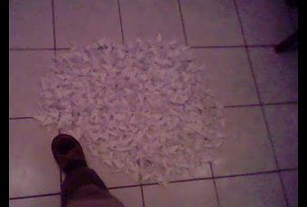 Aquí va un video en el que muestro mi ¨Senbazuru¨ a medio camino, si, a medio camino, ya qué pues termine de plegar las 1000 grullas, pero un ¨Senbazuru¨ son ¨tiras¨ de estas grullas, yo todavía no las he unido, nada más estan todas revueltas en una caja.
