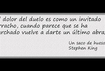 En esta ocasión he elegido una frase de Stephen King de su novela Un saco de huesos. La he escogido porque me parece una cita muy descriptiva que refleja muy bien un sentimiento muy íntimo con unas palabras muy directas y sencillas y con un toque cínico y desgarrador. Es una frase que además muestra muy bien el estilo de la prosa de King. Su visión del mundo siempre tiene un toque de humor negro que dice mucho más del papel que ocupa en el desarrollo de la historia.