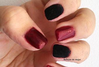 Es la primera vez que trabajo con velvet y me ha parecido algo complicado de manejar pero supongo que le iré cogiendo el tranquillo porque la técnica realmente no es difícil. El efecto aterciopelado me encanta, lo único que no se cuanto puede durar en la uña, ya os contaré.