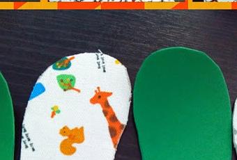 - Lo hacemos en la plantilla y en la goma eva para que tengamos dos de cada pie (pues luego se unirán). Si no queremos coger una plantilla, pues con hacer dos suelas de goma eva para cada piés es suficiente. Pero es que si encuentras plantillas graciosas....mola el doble. Otra opción sería forrar una de las capas con una tela que te guste y queda aún más personalizada.
