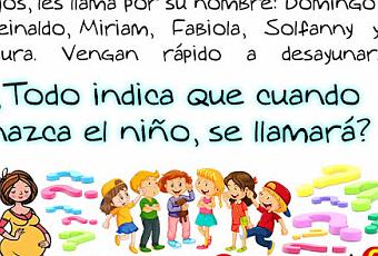 Una mujer embarazada y madre de seis hijos, les llama por su nombre: Domingo, Reinaldo, Miriam, Fabiola, Solfanny y Laura, vengan, raído a desayunar. Todo indica que cuando nazca el niño, ¿éste se llamará?. Acepta el reto y descubre el nombre del niño.
