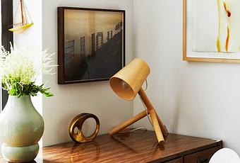 Un espacio en el que sus piezas de estilo mid century, de maderas y lineas curvadas hacen que adquieran un encanto que nos hace recordar y disfrutar sin prescindir de la comodidad y sobre todo de la limpieza visual que hace destacar los elementos.