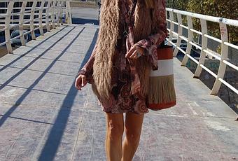 Lo he combinado con chaleco peluchín, que le va ideal a este tipo de vestidos, botines dorados y mi último Gloriaca .