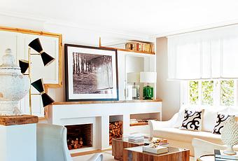 En un lugar donde la madera es la base dominante y donde los sillones aportan el aire elegante y retro a la vez, son las pequeñas pinceladas de dorados, piezas decorativas o soluciones, las que se encargan de aderezar un espacio que se vuelve admirable.