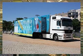 El camión de Reumasalud, instalado frente al Palacio de Congresos de la capital (Paseo del Violón s/n) durante dos días dio información a los ciudadanos que se acercaron sobre las enfermedades reumáticas más comunes, como son la artrosis, la osteoporosis, o los dolores cervicales y lumbares.