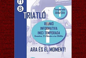 El próximo viernes 22 de Octubre de 2010 a las 20horas en las Instalaciones del Club Natació Sitges (Isaac Albeniz 6-8 Vallpineda-Sitges) se realizará una reunión informativa de la nueva temporada de Duatlon-Triatlon que comienza el 8 de Noviembre de 2010.En esta reunión se explicará la planificación que se llevará a cabo durante la Temporada 2010-2011, también hablaremos de los beneficios de formar parte de la Sección de Triatlon del Club Natació Sitges.