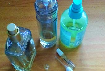 Para ello, si el frasco no tiene pulverizador, uso una jeringuilla y si nó, acerco el pulverizador del otro perfume a la embocadura y "disparo".