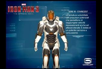 Gracias a una nueva imagen de Iron Man 3 – The Offcial Game, obtenemos otro vistazo a una armadura que ya conocíamos, la Mark 39 de Tony Stark, que también veremos en la película, y que recibe el sobrenombre de Starboost. La descripción indica que este traje tiene motores suborbitales con una armadura mejorada que puede alcanzar una velocidad impresionante incluso a grandes alturas. Además, tiene un poderoso cañón conmocionador.